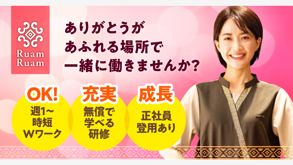 Ruam Ruamは働く従業員の「仕事とプライベートの両立」を目指し環境・制度を整えております。